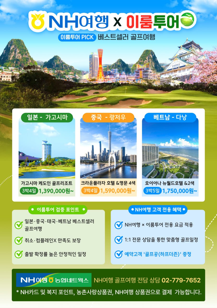 | 베스트셀러 골프여행 패키지 안내 [NH여행 X 이룸투어)2026-01-13 / 조회수 : 122 |